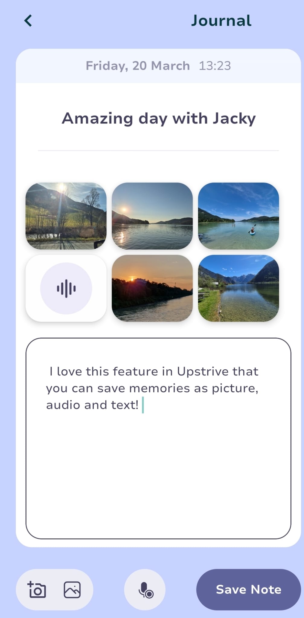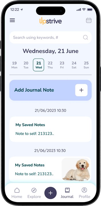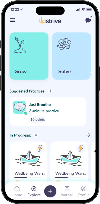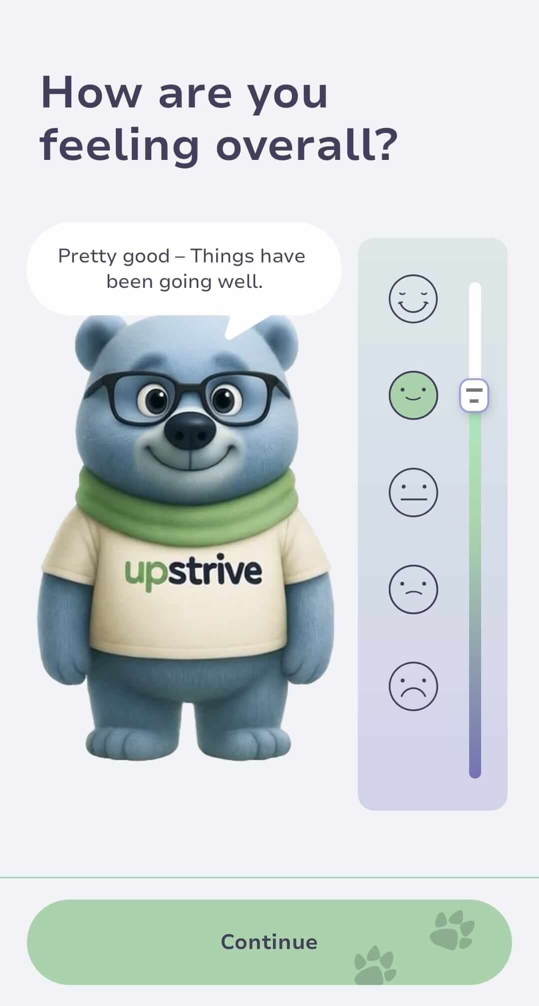 "Writing in a diary always felt cringe to me but the journal in Upstrive is different because it asks you questions instead of just leaving a blank page. Like 'what went well today?' or 'what would you do differently?' I started doing it before bed and I sleep so much better now. My therapist actually said she noticed I was better at putting my feelings into words. I think the journaling is why."