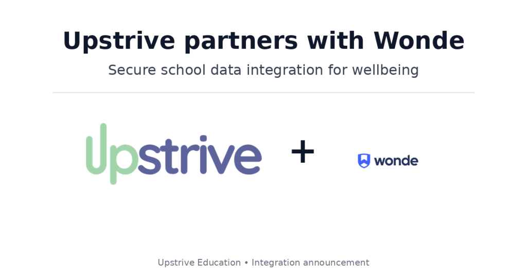 Upstrive has partnered with Wonde to simplify secure school data integration and strengthen wellbeing and school wellbeing initiatives. The partnership enables faster onboarding, reliable data access, and scalable wellbeing support for schools worldwide.